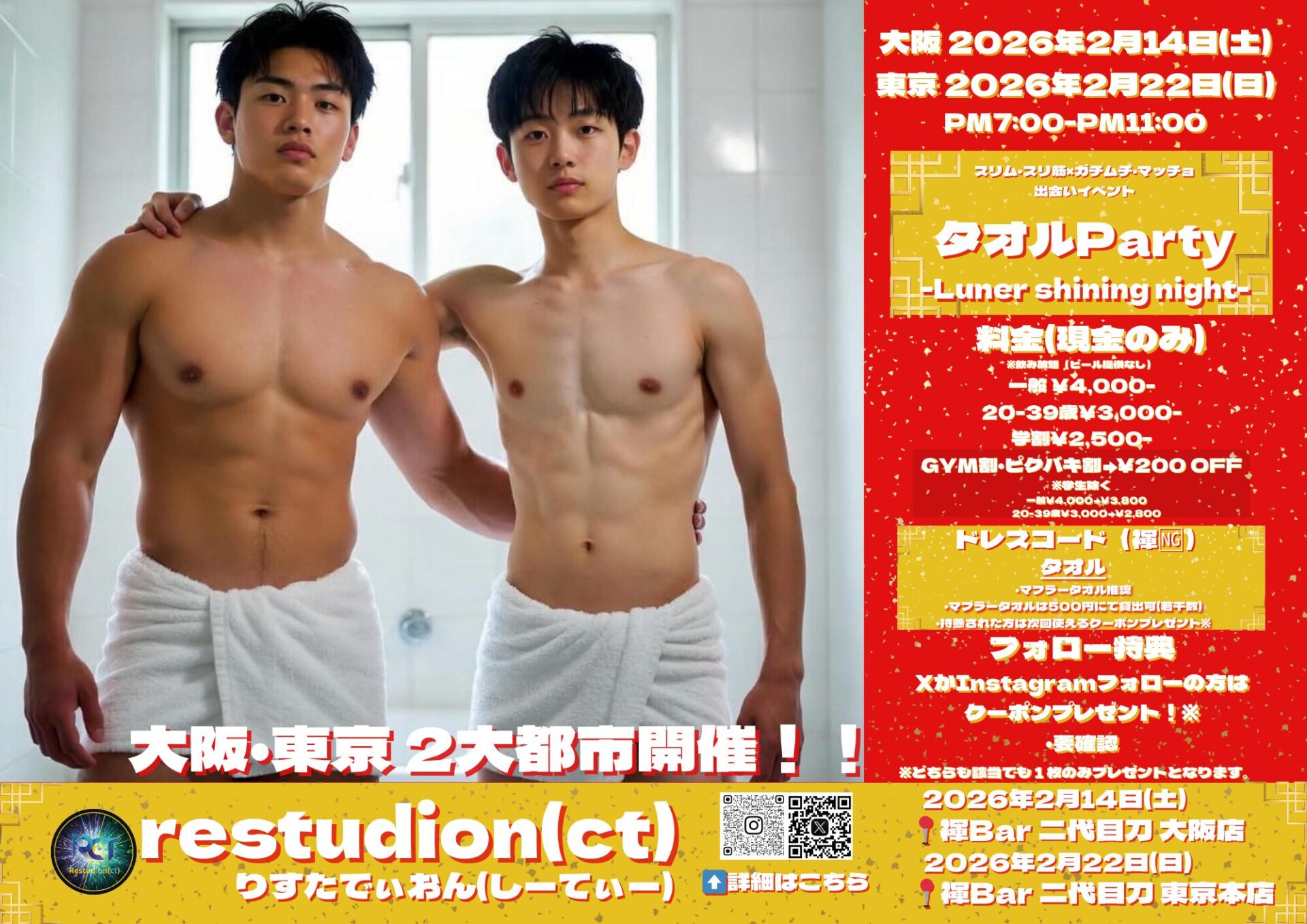 ※タオル持参とフォロー特典どちらか片方のみで1枚となります。