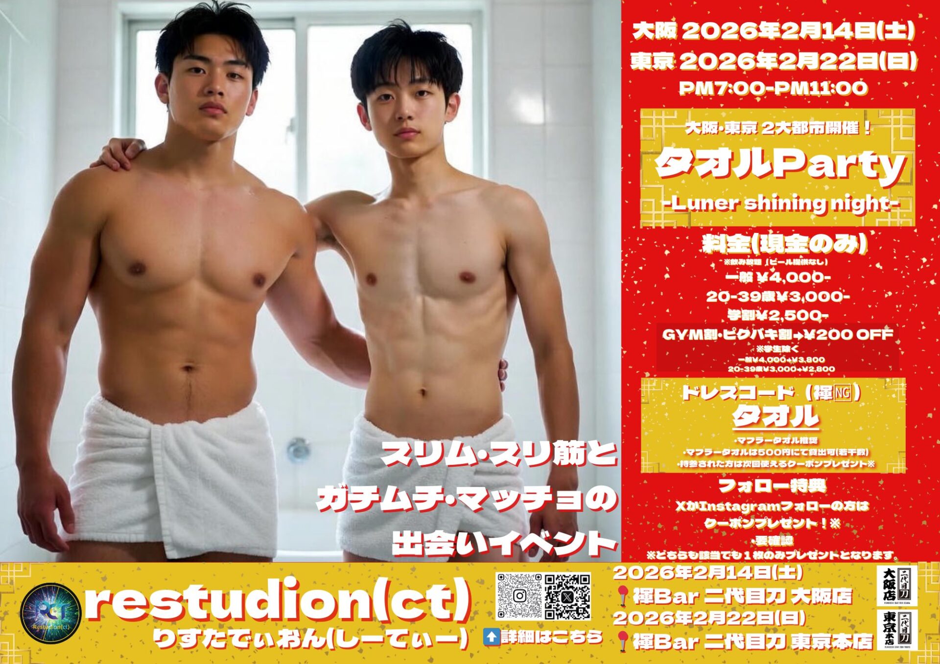 ※タオル持参とフォロー特典どちらか片方のみで1枚となります。